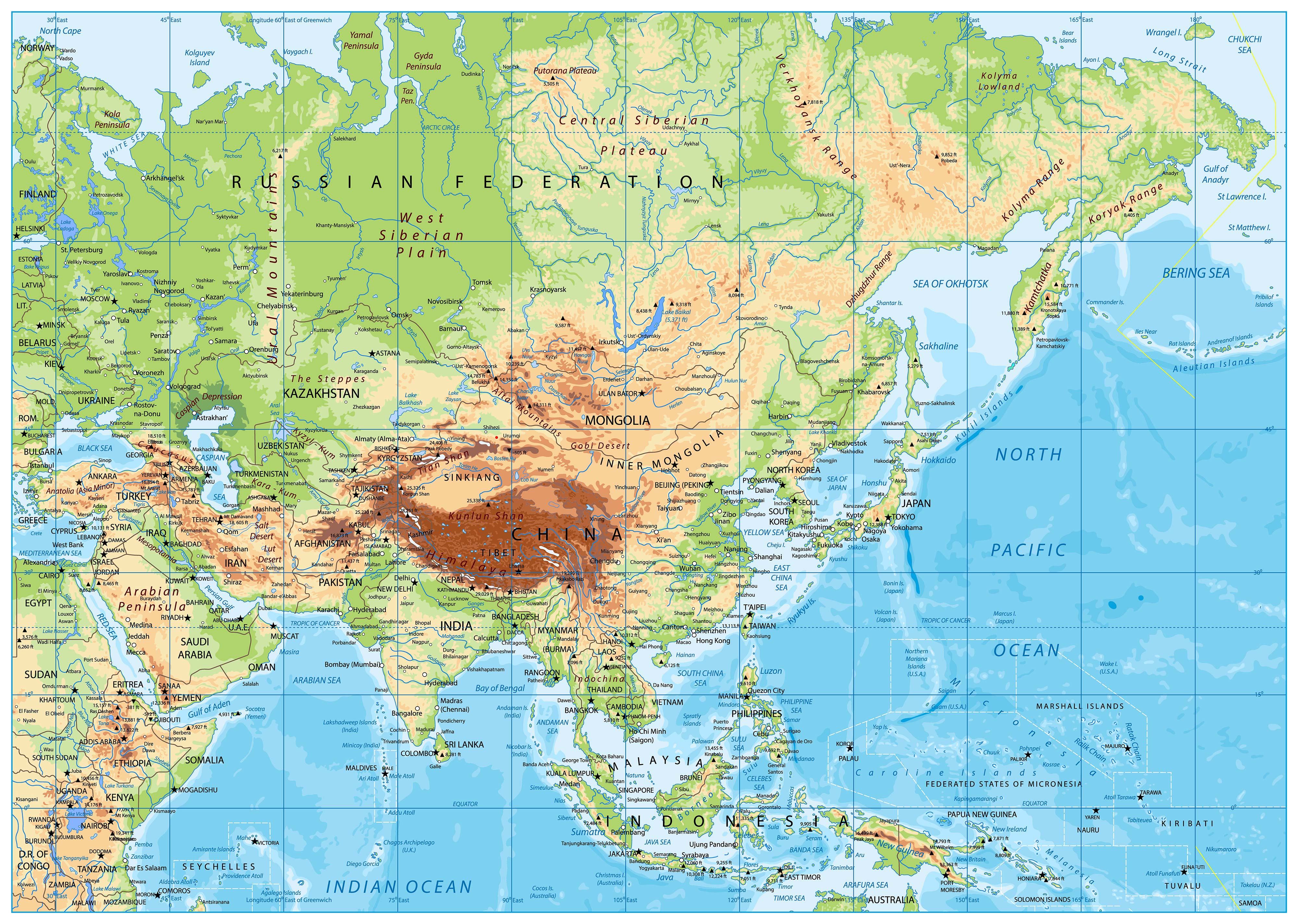 With interactive Asia Map, view regional highways maps, road situations, transportation, lodging guide, geographical map, physical maps and more information. On Asia Map, you can view all states, regions, cities, towns, districts, avenues, streets and popular centers' satellite, sketch and terrain maps.