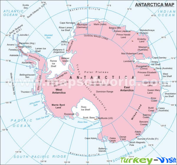At Antarctica Cities Map page, view countries political map of Antarctica, physical maps, satellite images, driving direction, interactive traffic map, Antarctica atlas, road, google street map, terrain, continent population, national geographic, regions and statistics maps.