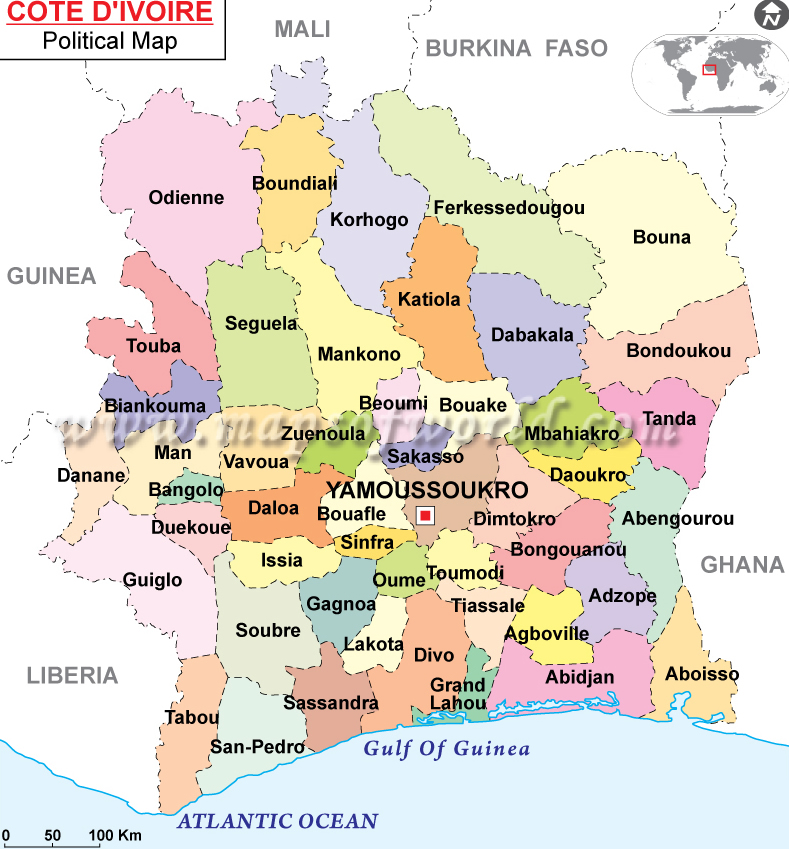 Where is Cote d'Ivoire & Map of Cote d'Ivoire