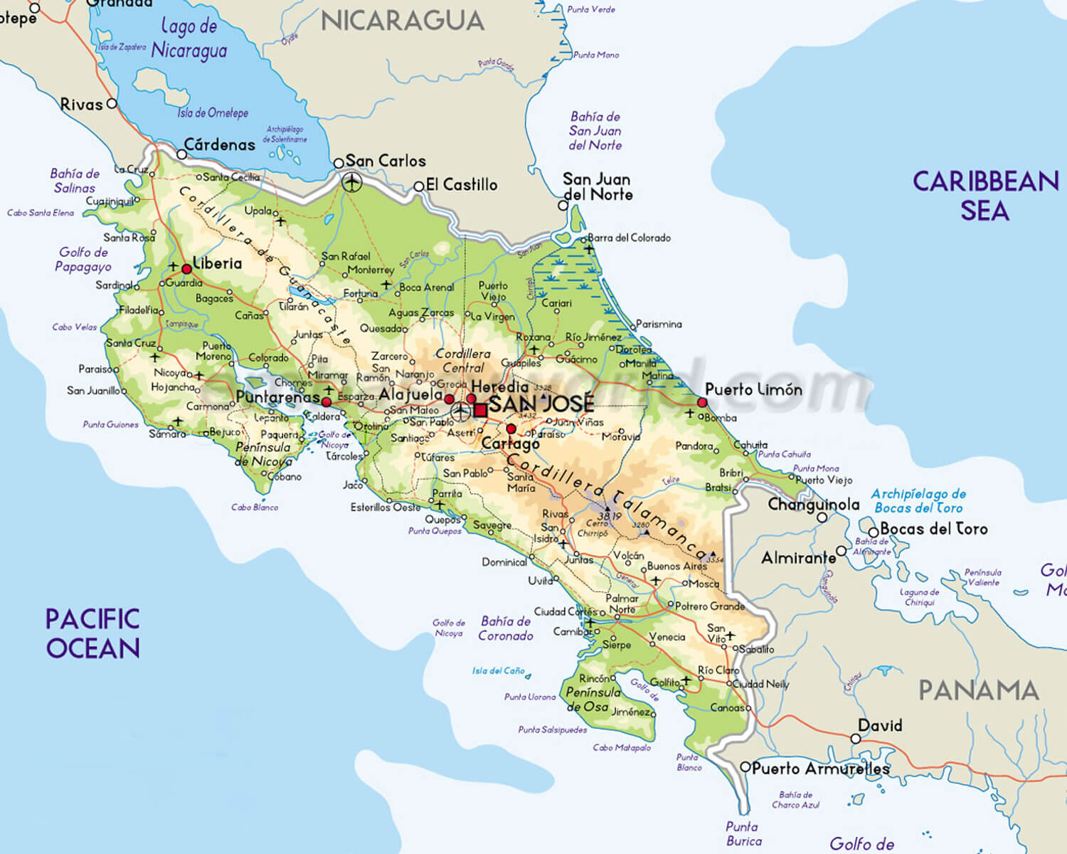 Google Map of Costa Rica page, view Costa Rica political, physical, country maps, satellite images photos and where is Costa Rica location in World map.