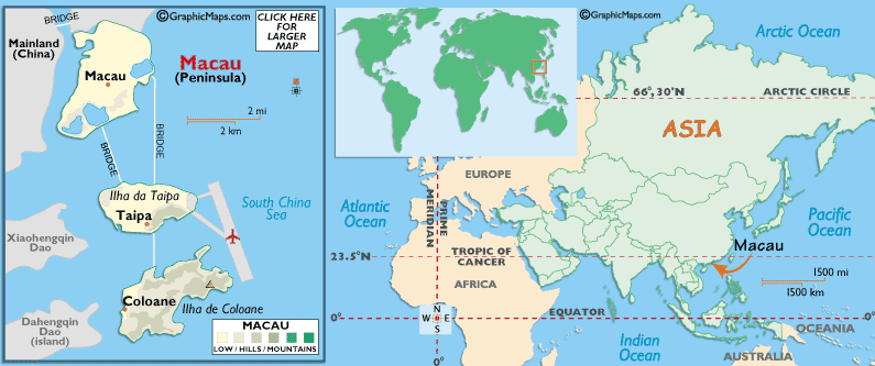 Navigate Macau Map, Macau countries map, satellite images of the Macau, Macau largest cities maps, political map of Macau, driving directions and traffic maps.
