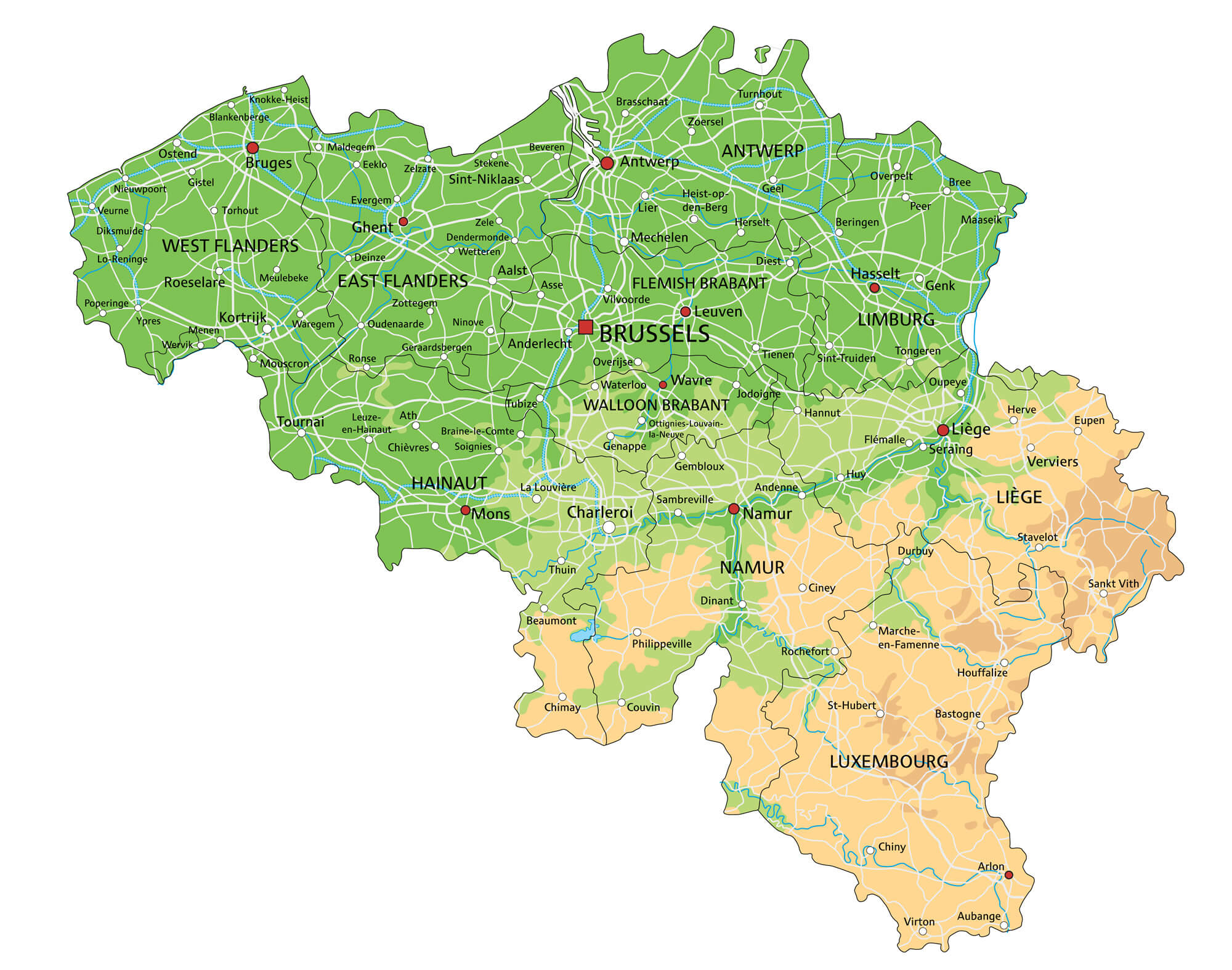 Belgium Physical Map
