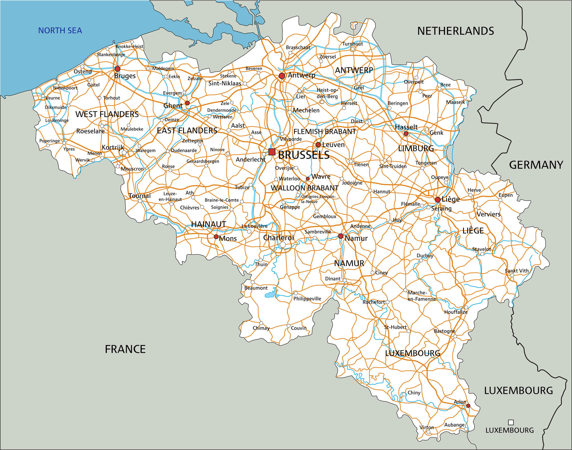 Belgium Map with Main Cities