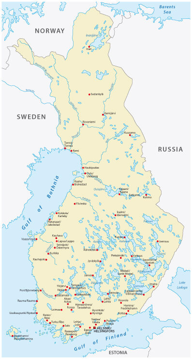 Finland Cities Map in Finnish and Swedish