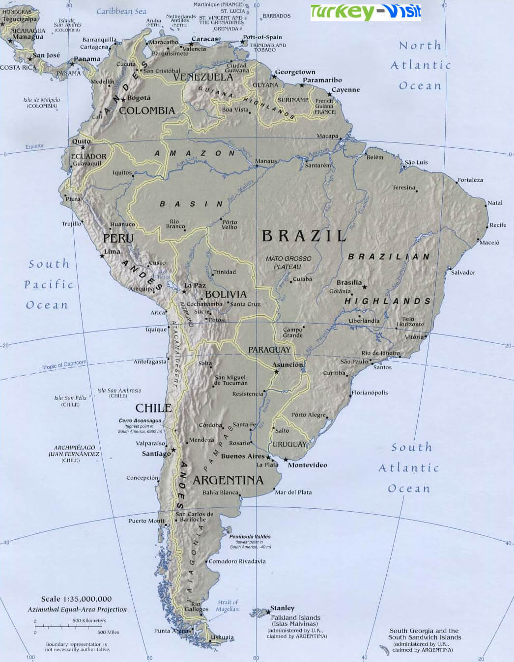 Navigate map of South America, South America country maps, satellite images of the South America, South America largest city maps, political, physical map of South America, driving directions and traffic maps.