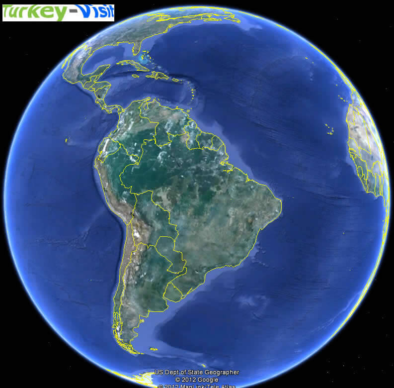 Find desired maps by entering country, city, town, region or village names regarding under search criteria. On upper left Map of South America (+) beside zoom in and (-) sign to to zoom out via the links you can visit. South America Map move the mouse over it via (left click) and clicking the image you can drag. Right upper Map, Satellite, Terrain icons via the map view, satellite, hybrid and terrain map can be switch between images.