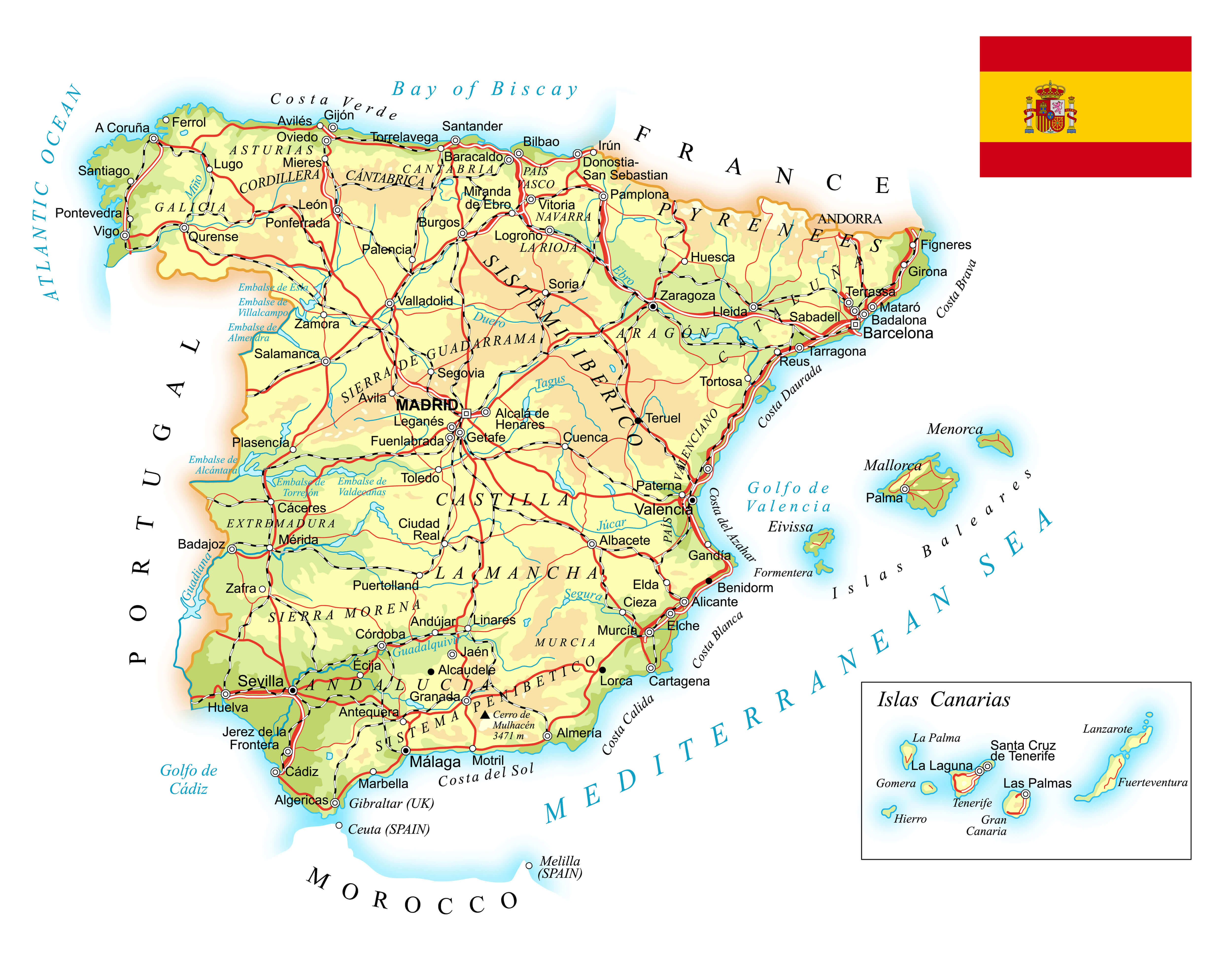 With interactive Spain Map, view regional highways maps, road situations, transportation, lodging guide, geographical map, physical maps and more information. On Spain Map, you can view all states, regions, cities, towns, districts, avenues, streets and popular centers' satellite, sketch and terrain maps.