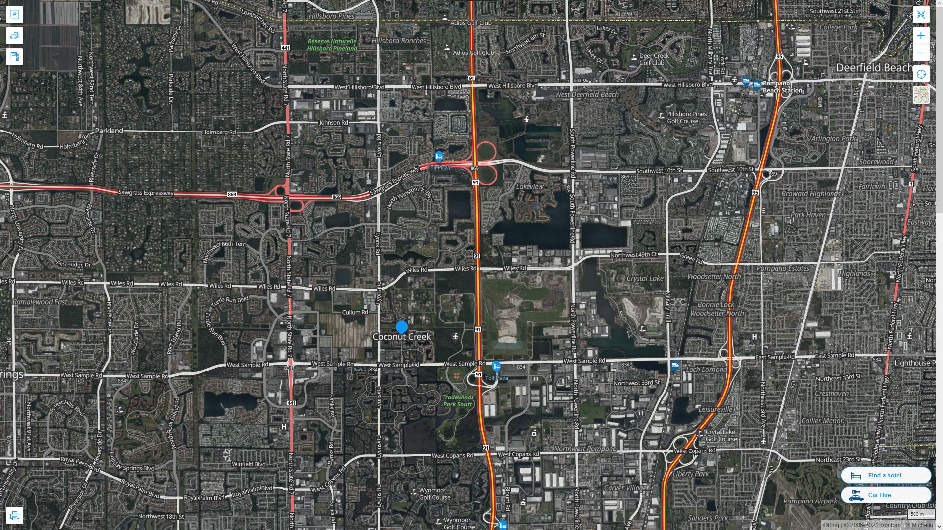 COCONUT CREEK FLORIDA HIGHWAY AND ROAD MAP WITH SATELLITE VIEW