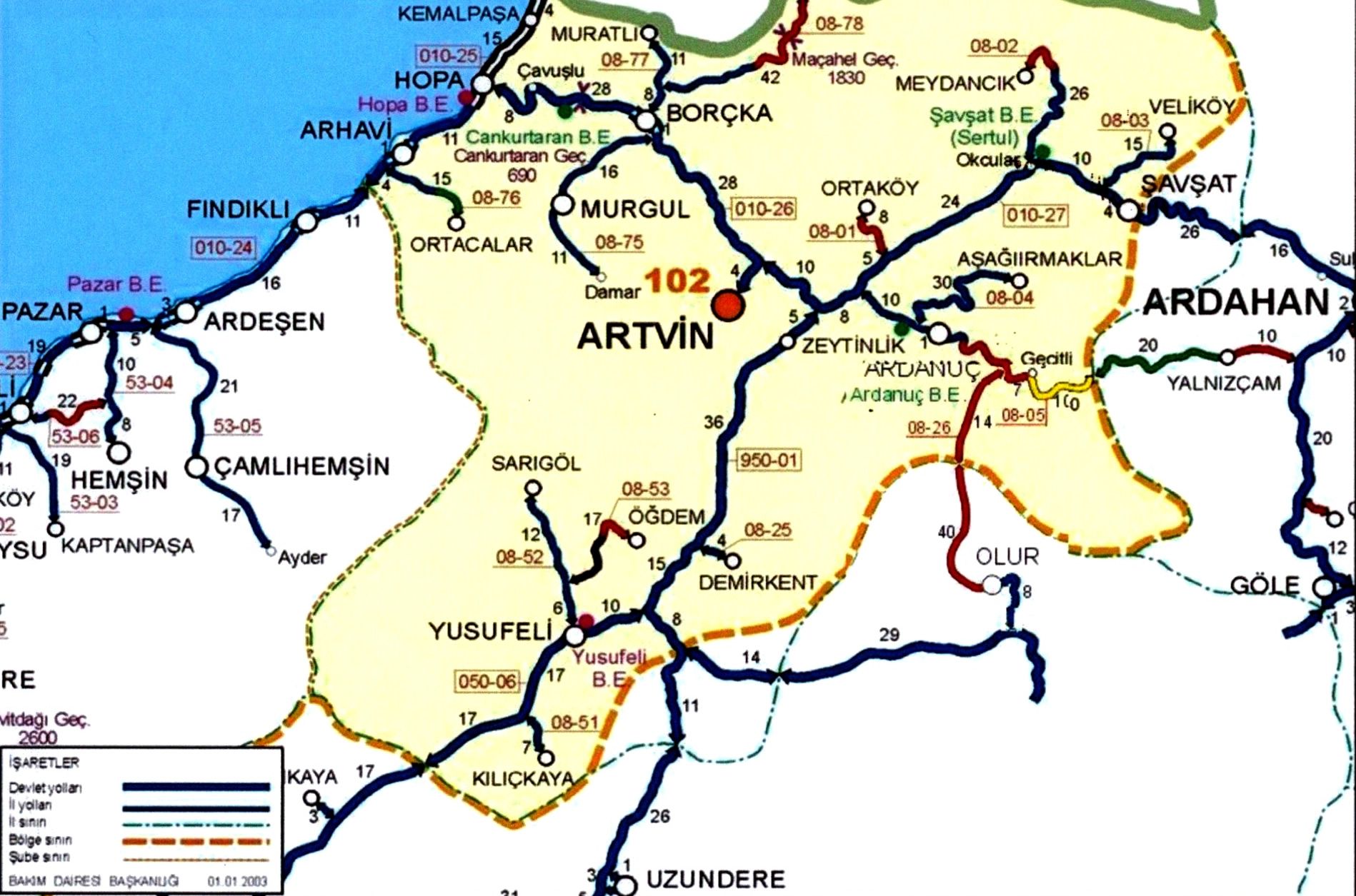 ARTVIN HIGHWAYS MAP