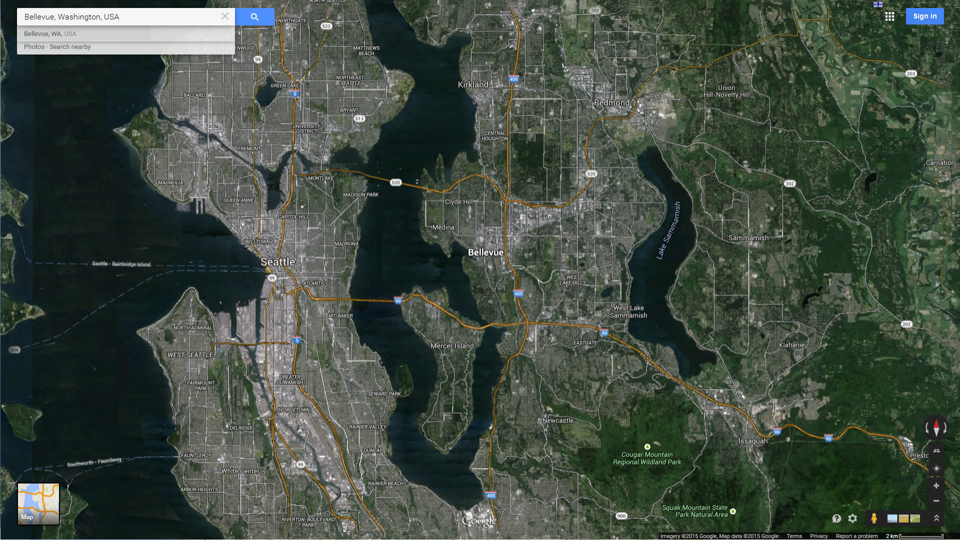 BELLEVUE MAP WASHINGTON US SATELLITE