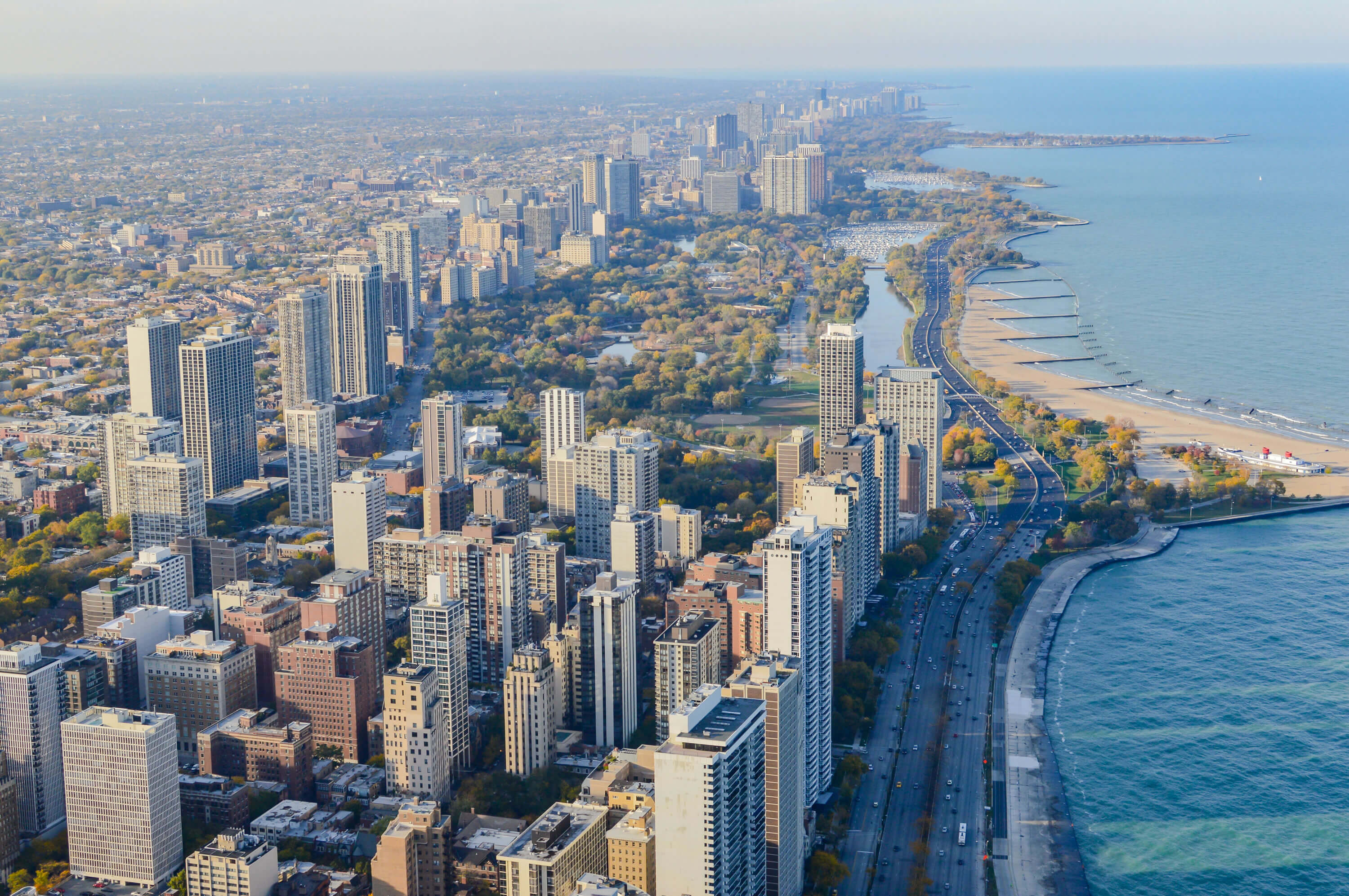 AERIAL VIEW OF CHICAGO DOWNTOWN
