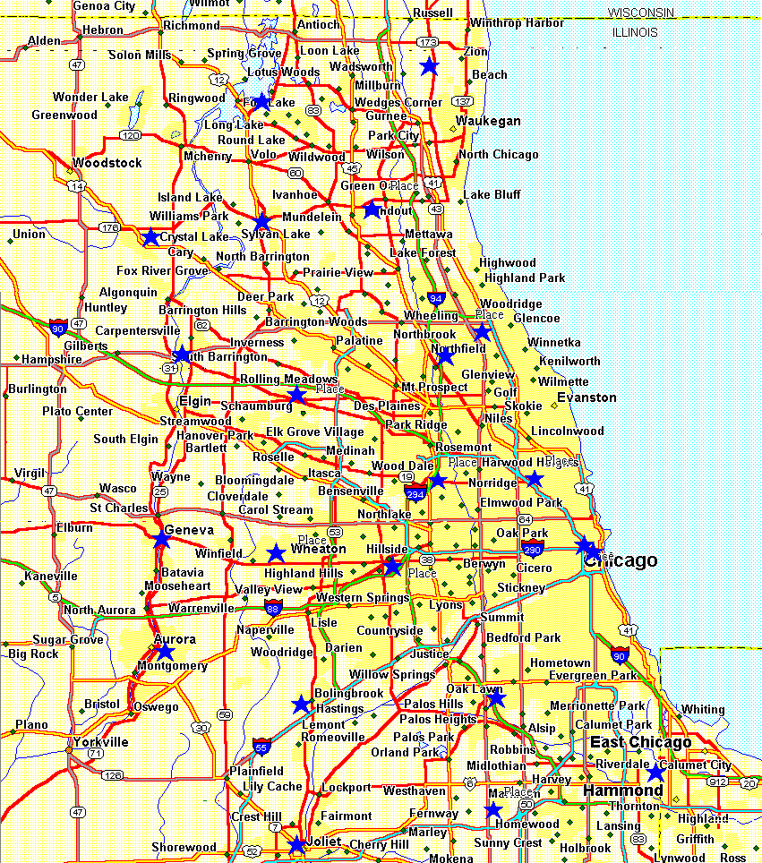 CHICAGO ILLINOIS HIGHWAY AND ROAD MAP WITH SATELLITE VIEW