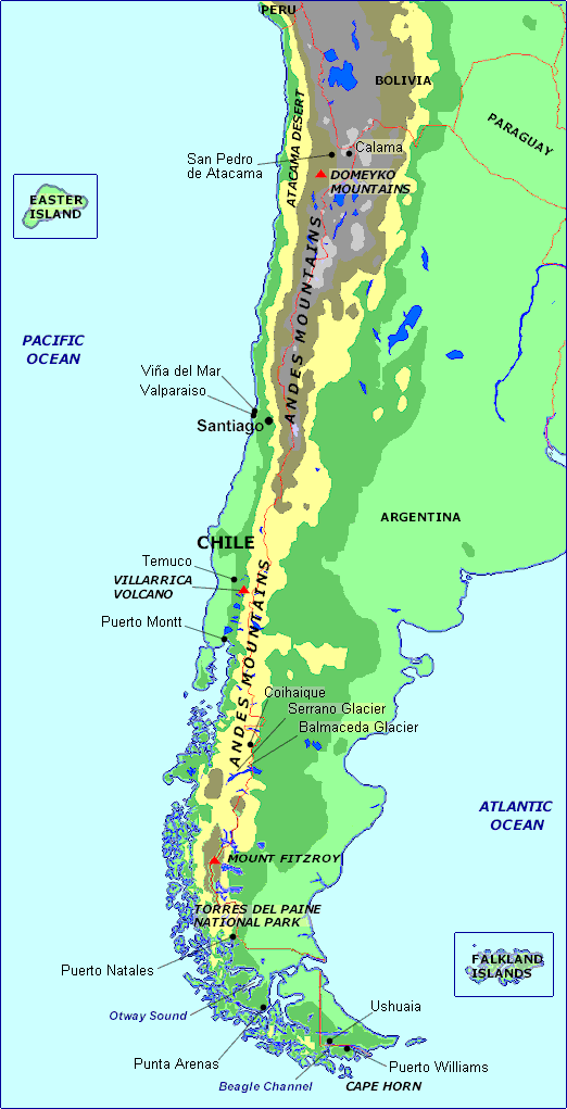 turkey-visit.com offers a collection of Chile map, google map, Chile atlas, political, physical, satellite view, country infos, cities map and more map of Chile.
