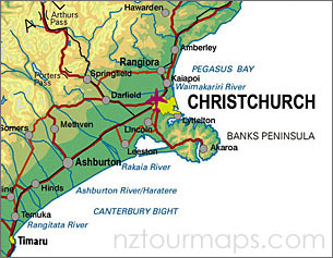 MAP OF NEW ZEALAND CHRISTCHURCH
