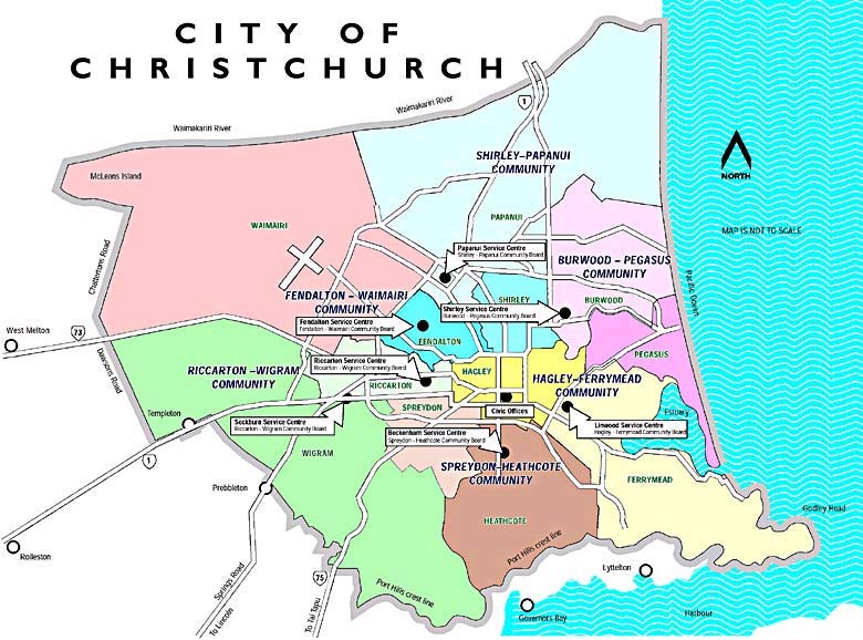 POLITICAL MAP OF CHRISTCHURCH.