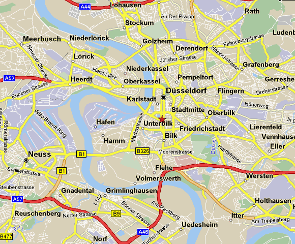 With interactive Dusseldorf Map, view regional highways maps, road situations, transportation, lodging guide, geographical map, physical maps and more information. On Dusseldorf Map, you can view all states, regions, cities, towns, districts, avenues, streets and popular centers' satellite, sketch and terrain maps.