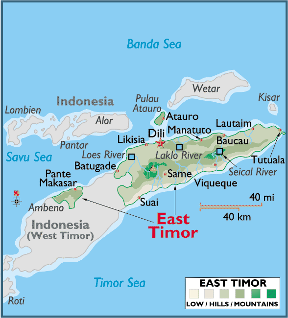 turkey-visit.com offers a collection of East Timor map, google map, East Timor atlas, political, physical, satellite view, country infos, cities map and more map of East Timor.