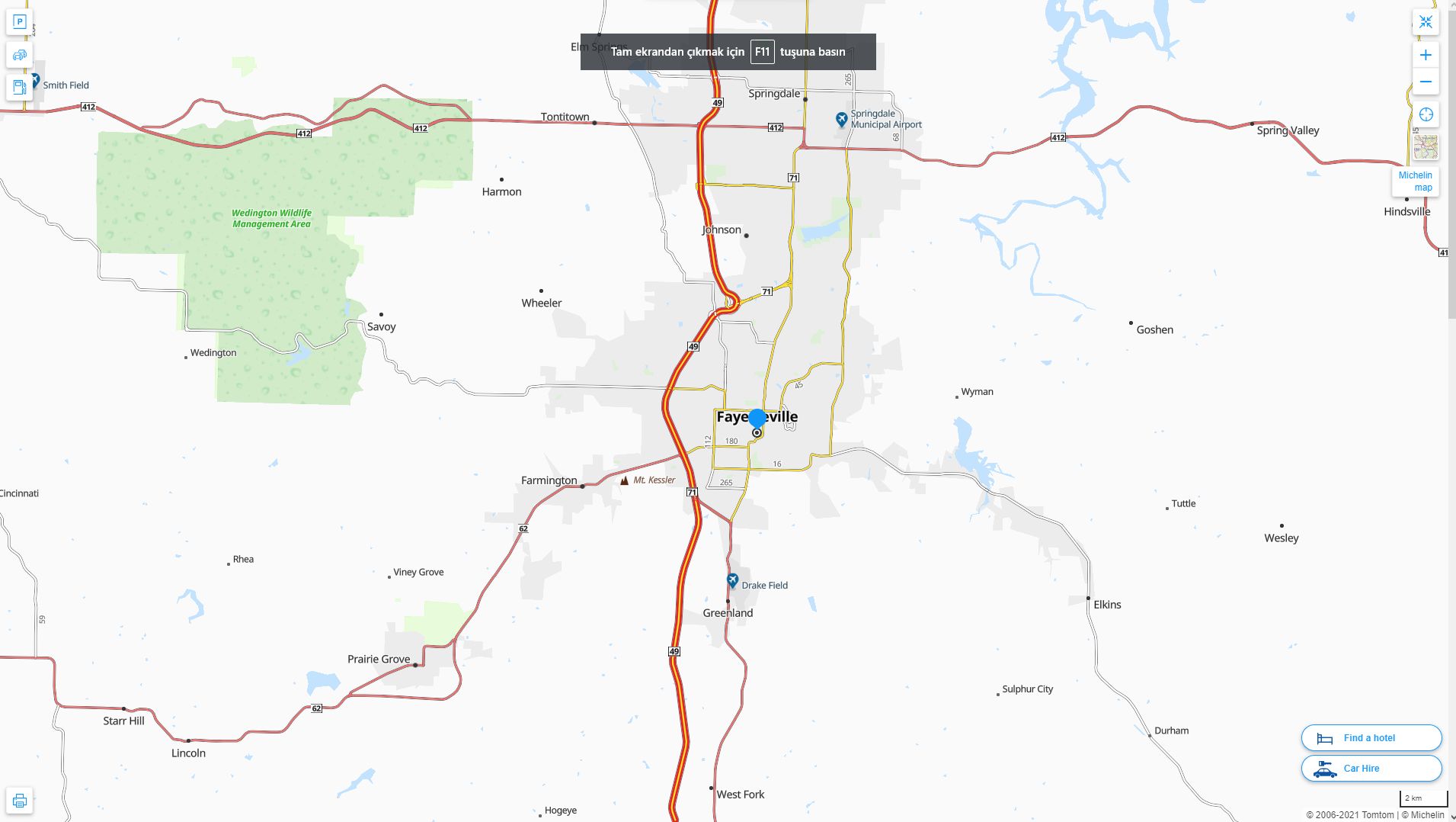 FAYETTEVILLE ARKANSAS HIGHWAY AND ROAD MAP