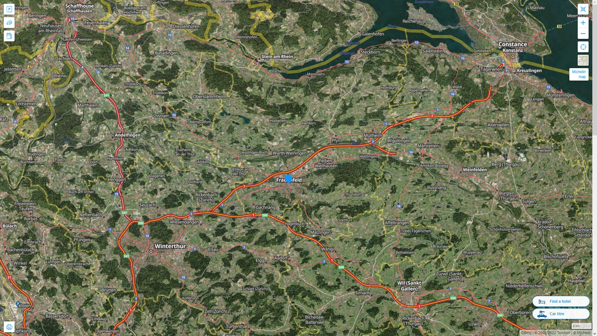 FRAUENFELD HIGHWAY AND ROAD MAP WITH SATELLITE VIEW