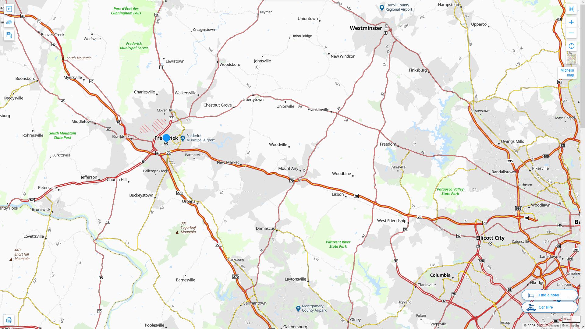 With interactive Frederick Maryland Map, view regional highways maps, road situations, transportation, lodging guide, geographical map, physical maps and more information. On Frederick Maryland Map, you can view all states, regions, cities, towns, districts, avenues, streets and popular centers' satellite, sketch and terrain maps.