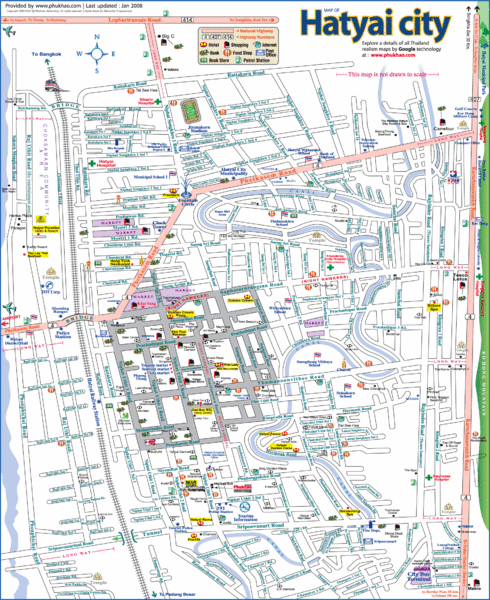 Navigate Hat Yai map, Hat Yai country map, satellite images of Hat Yai, Hat Yai largest cities, towns maps, political map of Hat Yai, driving directions, physical, atlas and traffic maps in Thailand.