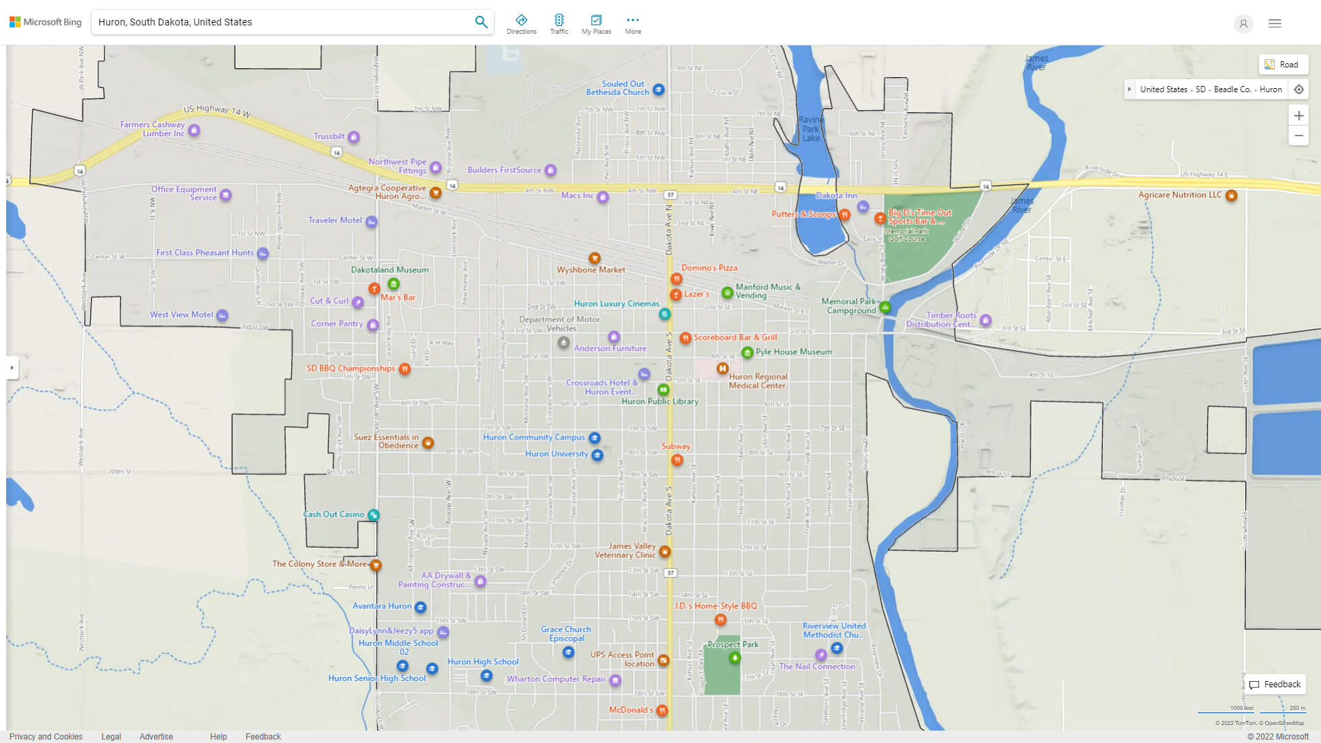 Huron South Dakota Map
