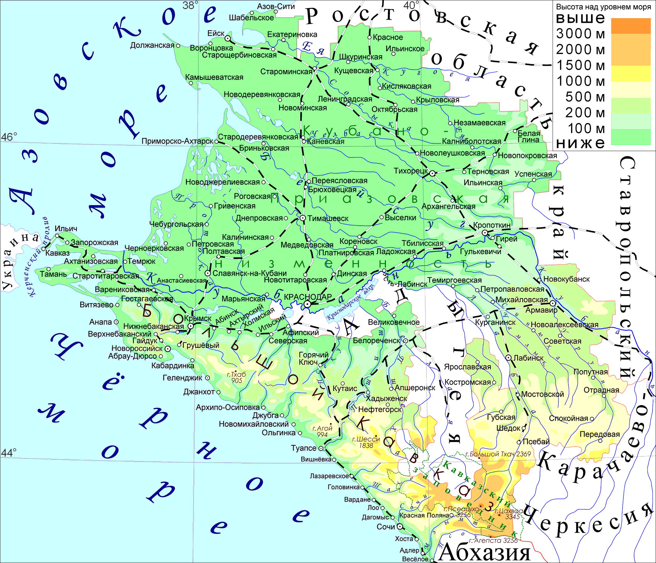 Alphabetically Cities Map of Krasnodar & Population of Krasnodar Cities