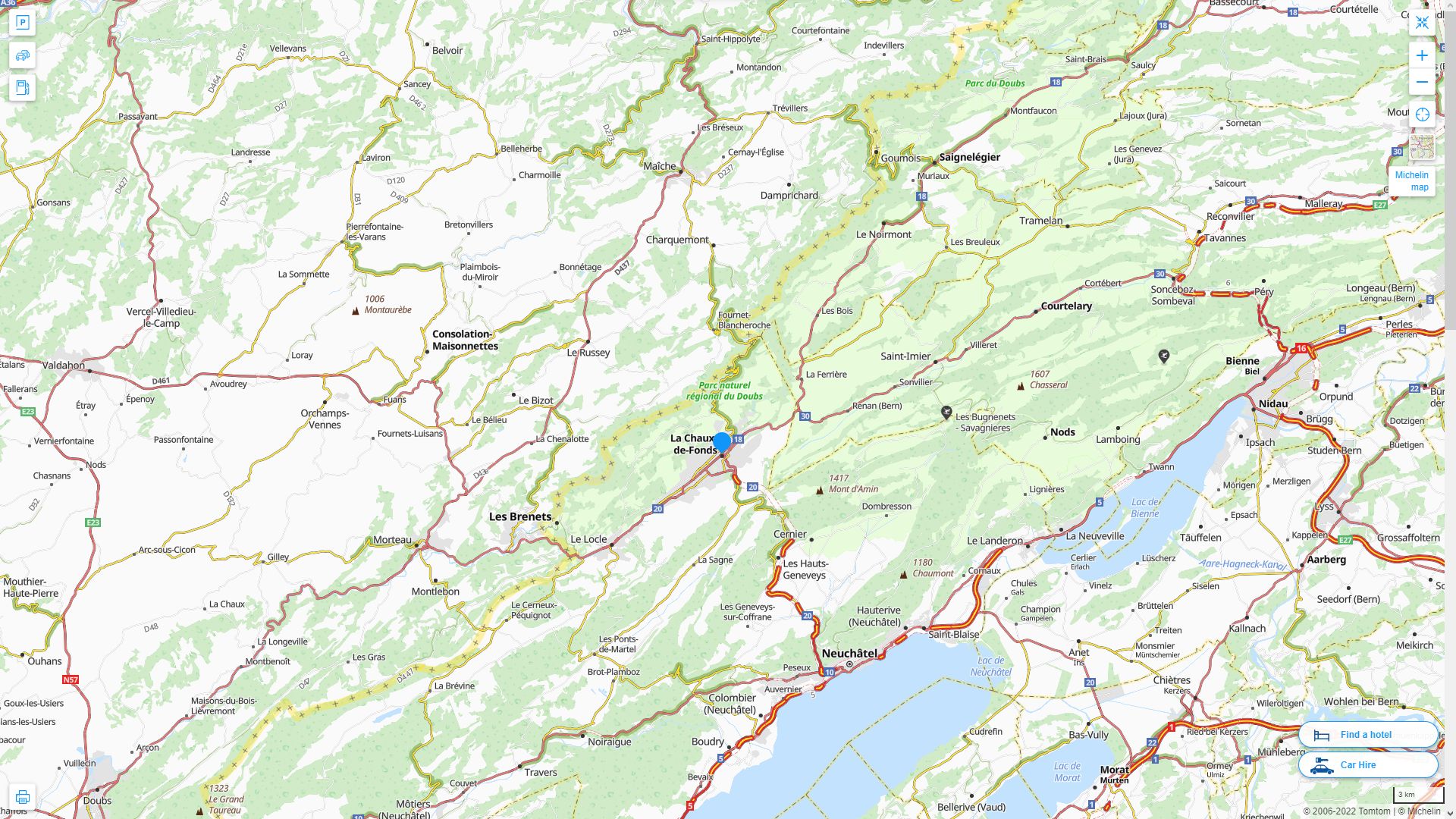 LA CHAUX E FONDS HIGHWAY AND ROAD MAP