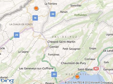 La Chaux e Fonds Map