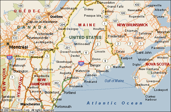 With interactive Maine Map, view regional highways maps, road situations, transportation, lodging guide, geographical map, physical maps and more information. On Maine Map, you can view all states, regions, cities, towns, districts, avenues, streets and popular centers' satellite, sketch and terrain maps.