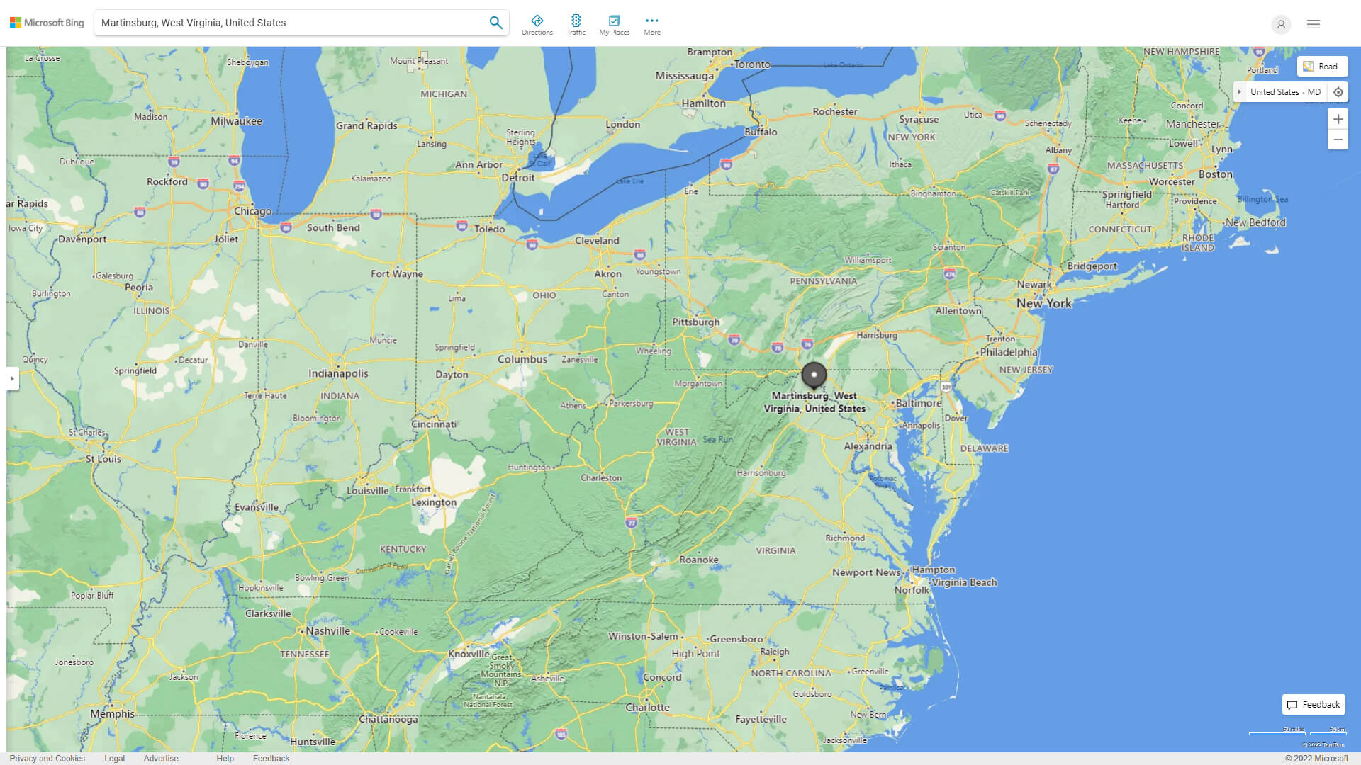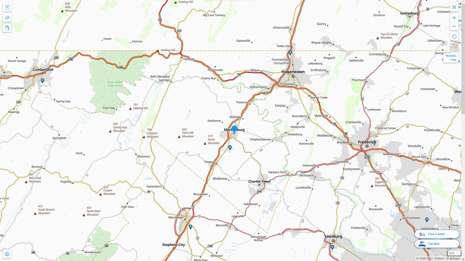 MARTINSBURG WEST VIRGINIA HIGHWAY AND ROAD MAP