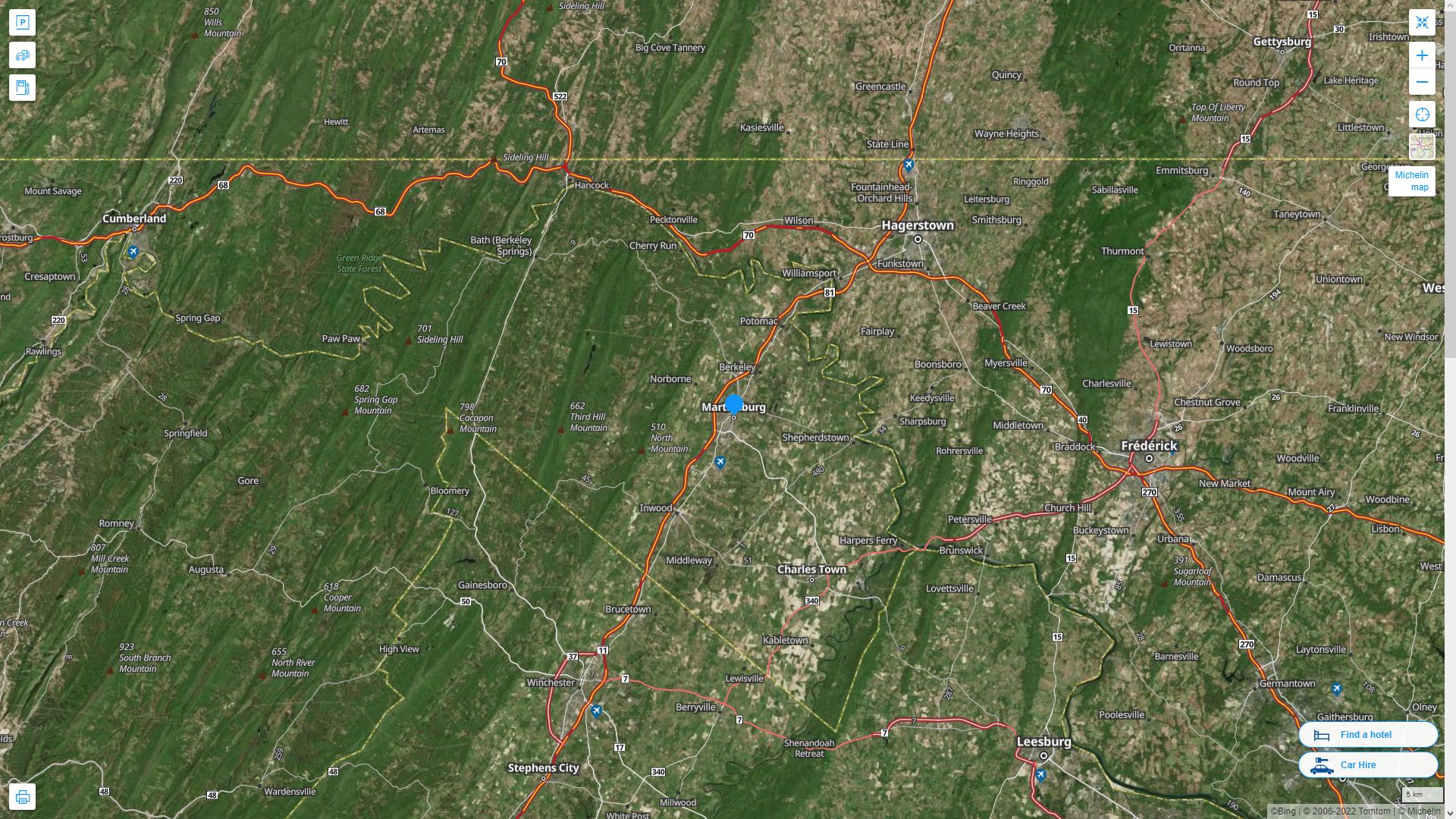 MARTINSBURG WEST VIRGINIA HIGHWAY AND ROAD MAP WITH SATELLITE VIEW