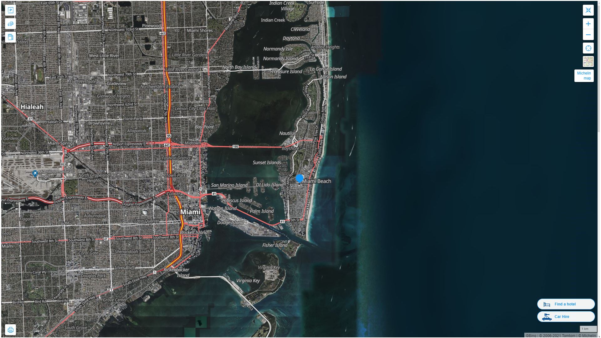MIAMI BEACH FLORIDA HIGHWAY AND ROAD MAP WITH SATELLITE VIEW