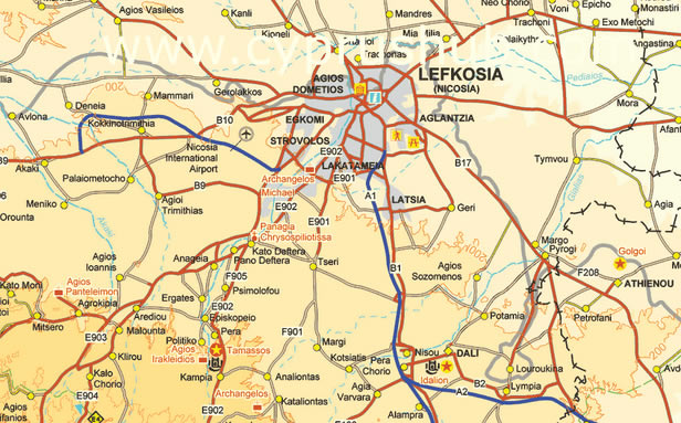 Navigate Nicosia map, Nicosia country map, satellite images of Nicosia, Nicosia largest cities, towns maps, political map of Nicosia, driving directions, physical, atlas and traffic maps in Cyprus.