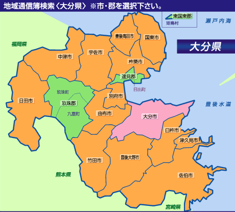Alphabetically Cities Map of Oita & Population of Oita Cities