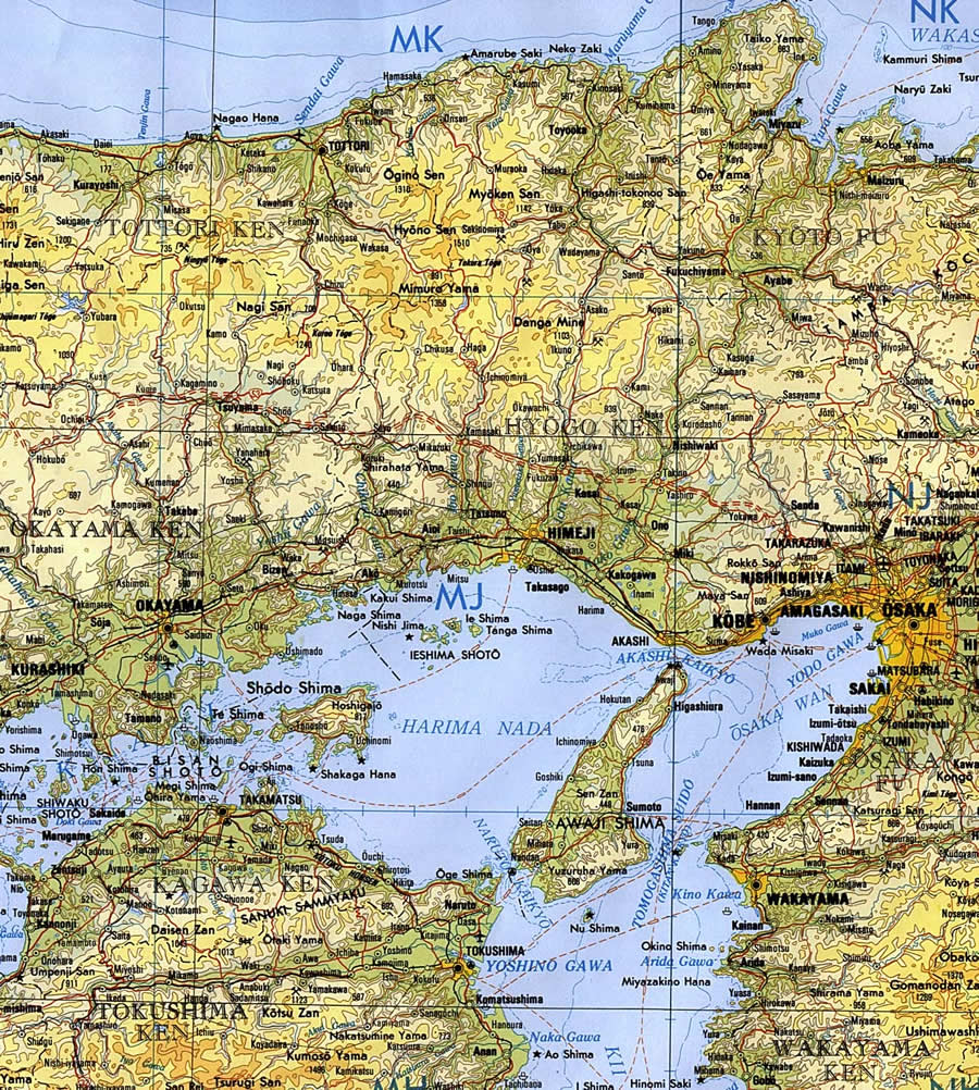 OSAKA HACIA OKAYAMA JAPAN 1977 MAP