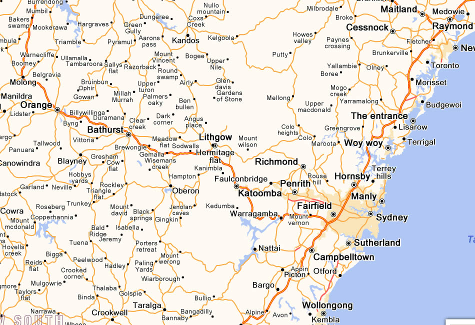 ORANGE HIGHWAY AND ROAD MAP WITH SATELLITE VIEW