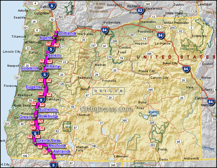 OREGON MAP INTERSTATE 5
