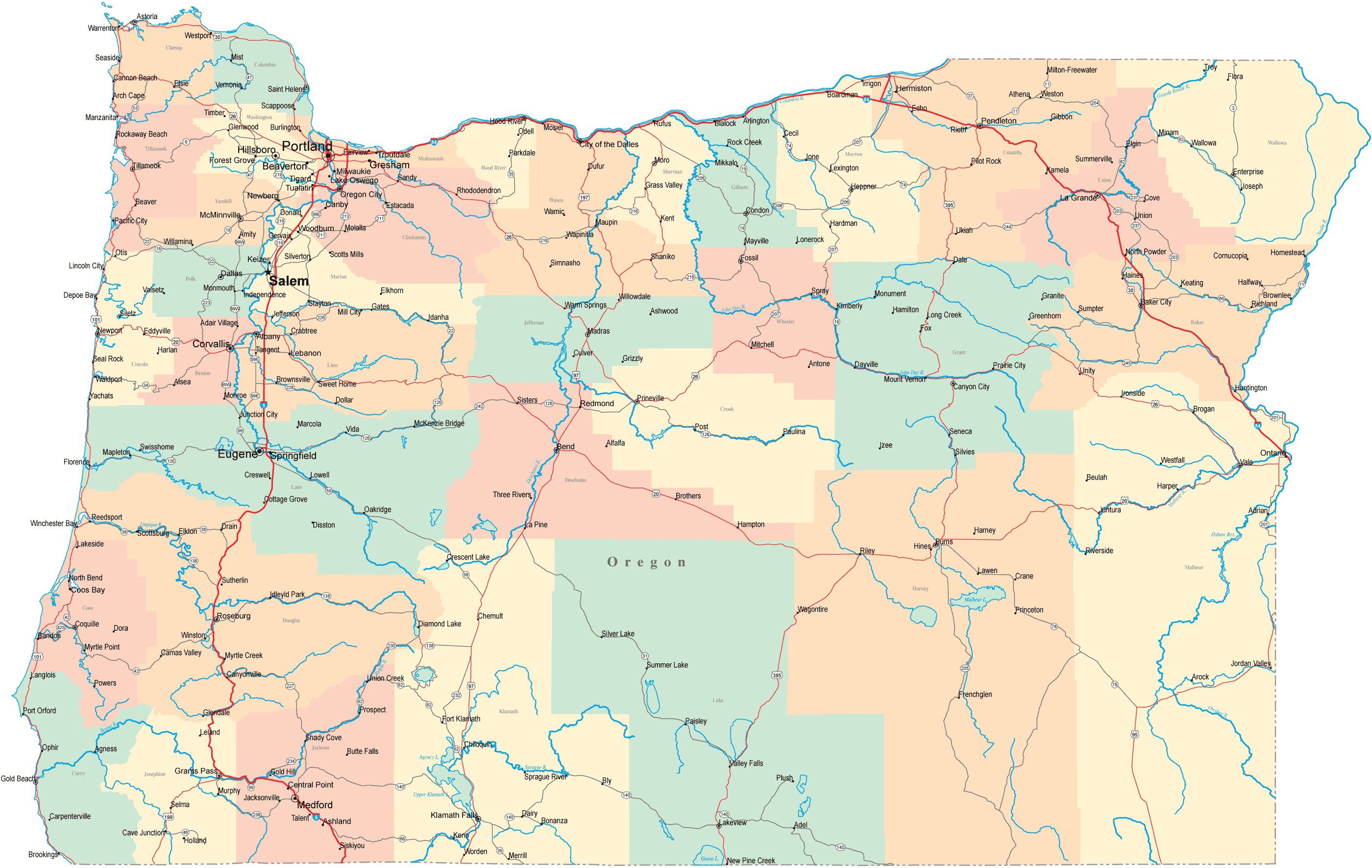 POLITICAL MAP OF OREGON