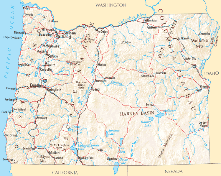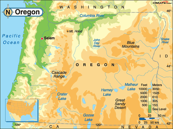 OREGON PHYSICAL MAP