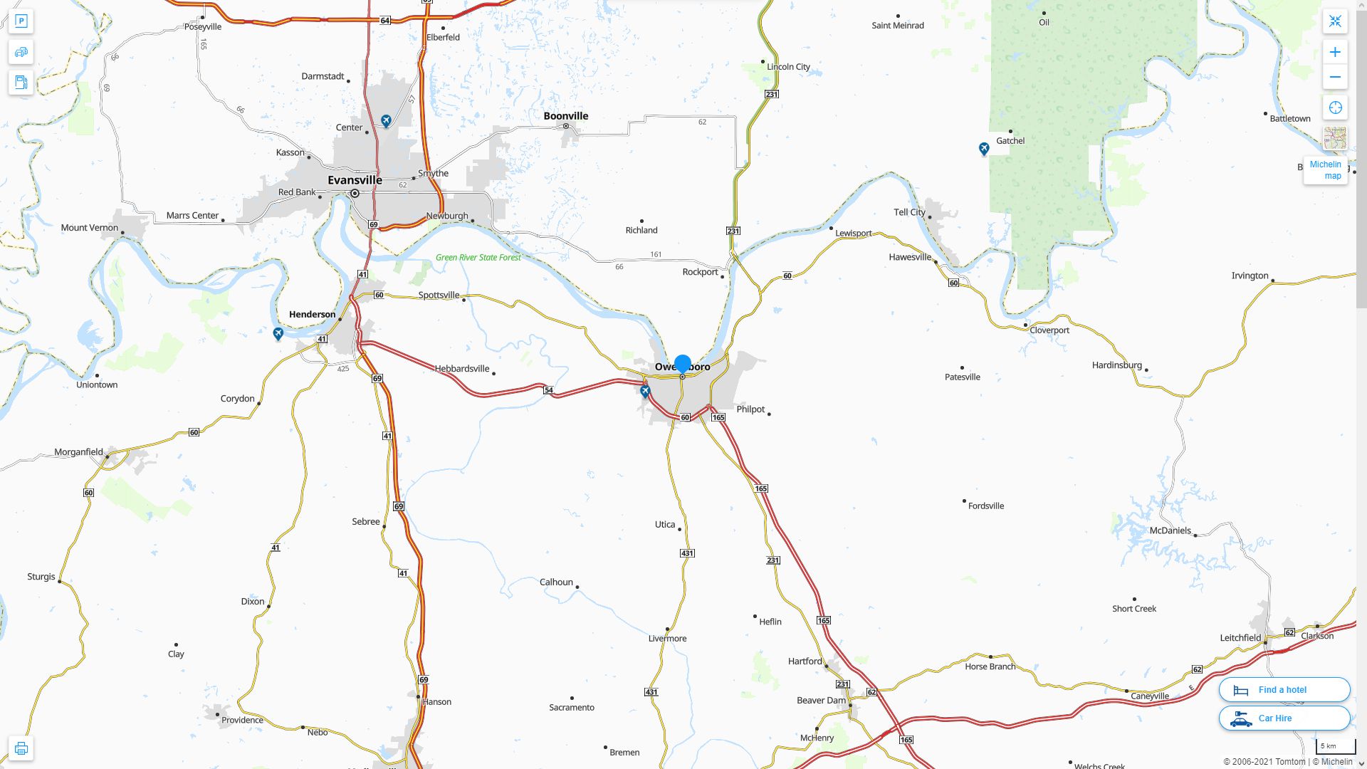 OWENSBORO KENTUCKY HIGHWAY AND ROAD MAP