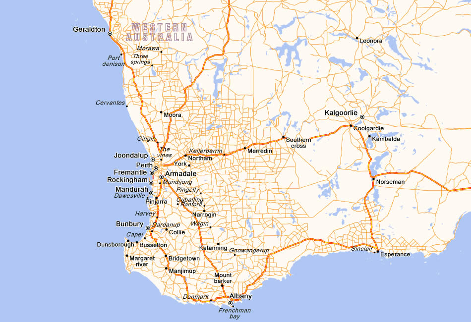 PERTH HIGHWAY AND ROAD MAP WITH SATELLITE VIEW