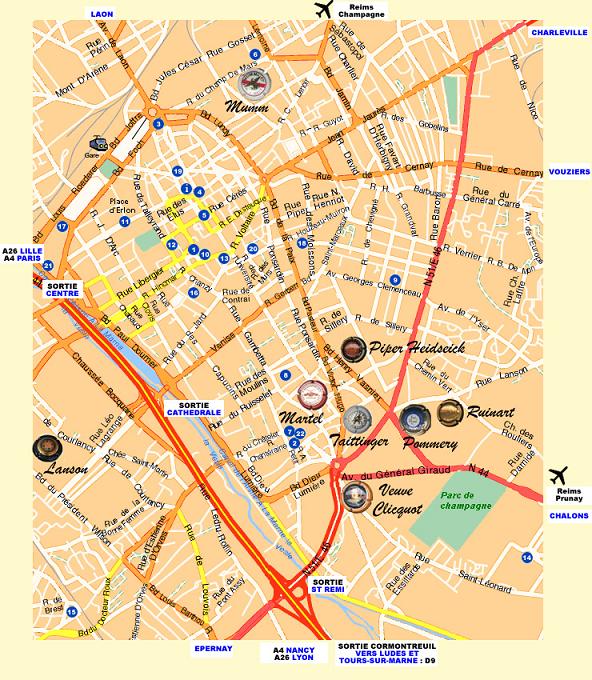 With interactive Reims Map, view regional highways maps, road situations, transportation, lodging guide, geographical map, physical maps and more information. On Reims Map, you can view all states, regions, cities, towns, districts, avenues, streets and popular centers' satellite, sketch and terrain maps.