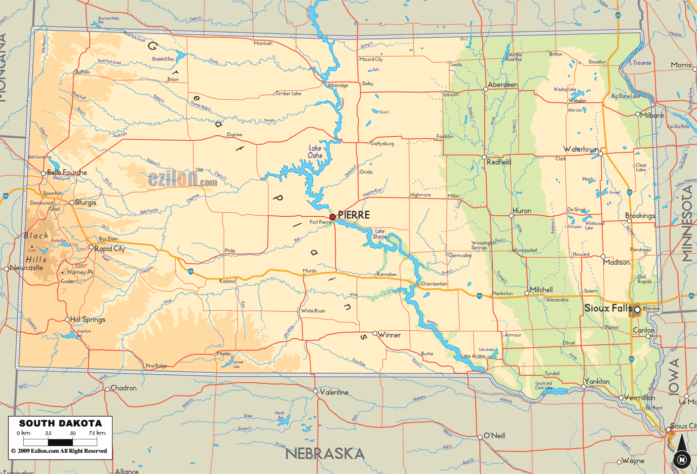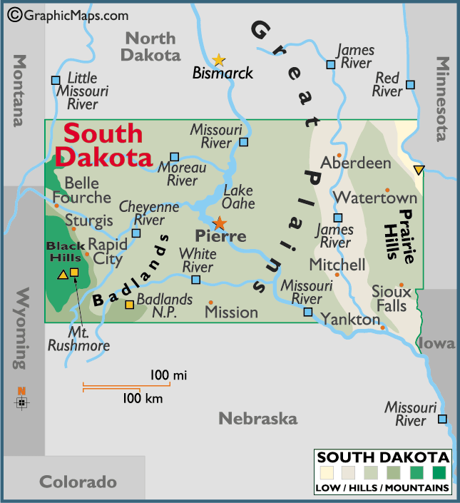 SOUTH DAKOTA PHYSICAL MAP