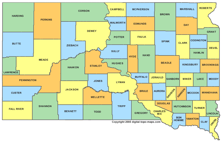 SOUTH DAKOTA COUNTIES MAP