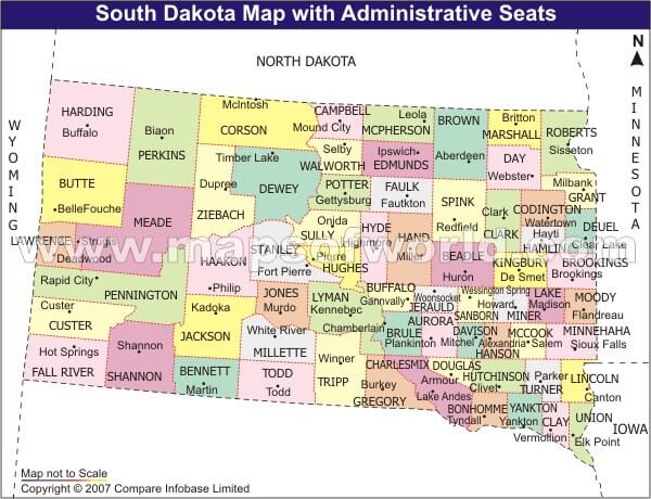 SOUTH DAKOTA COUNTY SEAT MAP