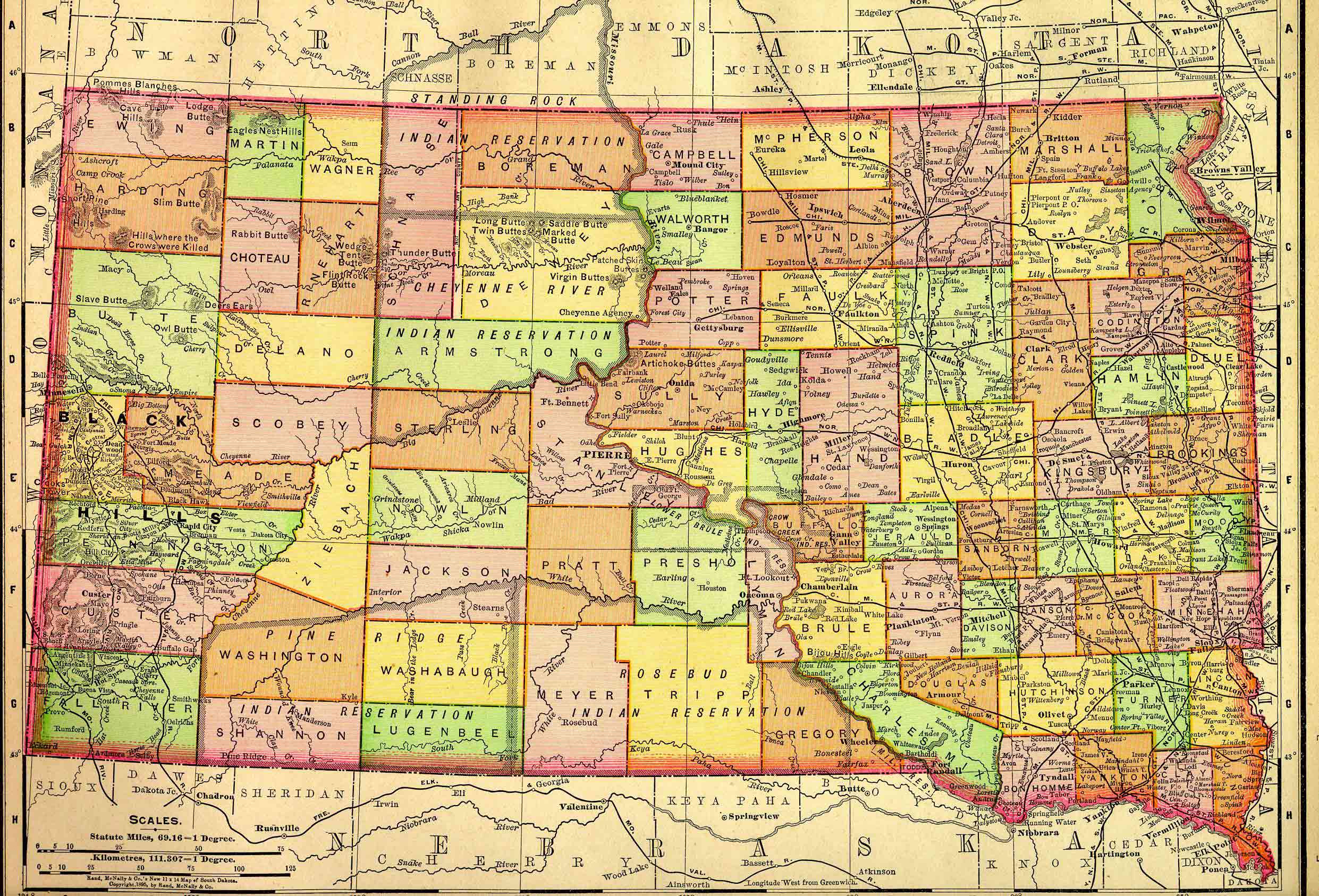 SOUTH DAKOTA HISTORICAL MAP 1895