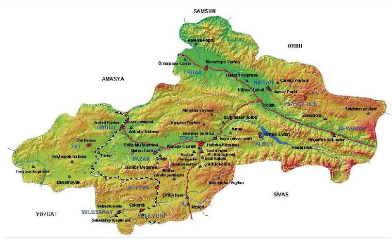 Navigate Tokat map, Tokat country map, satellite images of Tokat, Tokat largest cities, towns maps, political map of Tokat, driving directions, physical, atlas and traffic maps in Turkey.