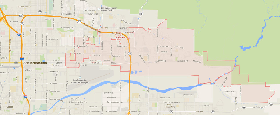 Navigate Highland, California Map, map of Highland, Highland California regions map, Highland satellite image, towns map, road map of Highland.