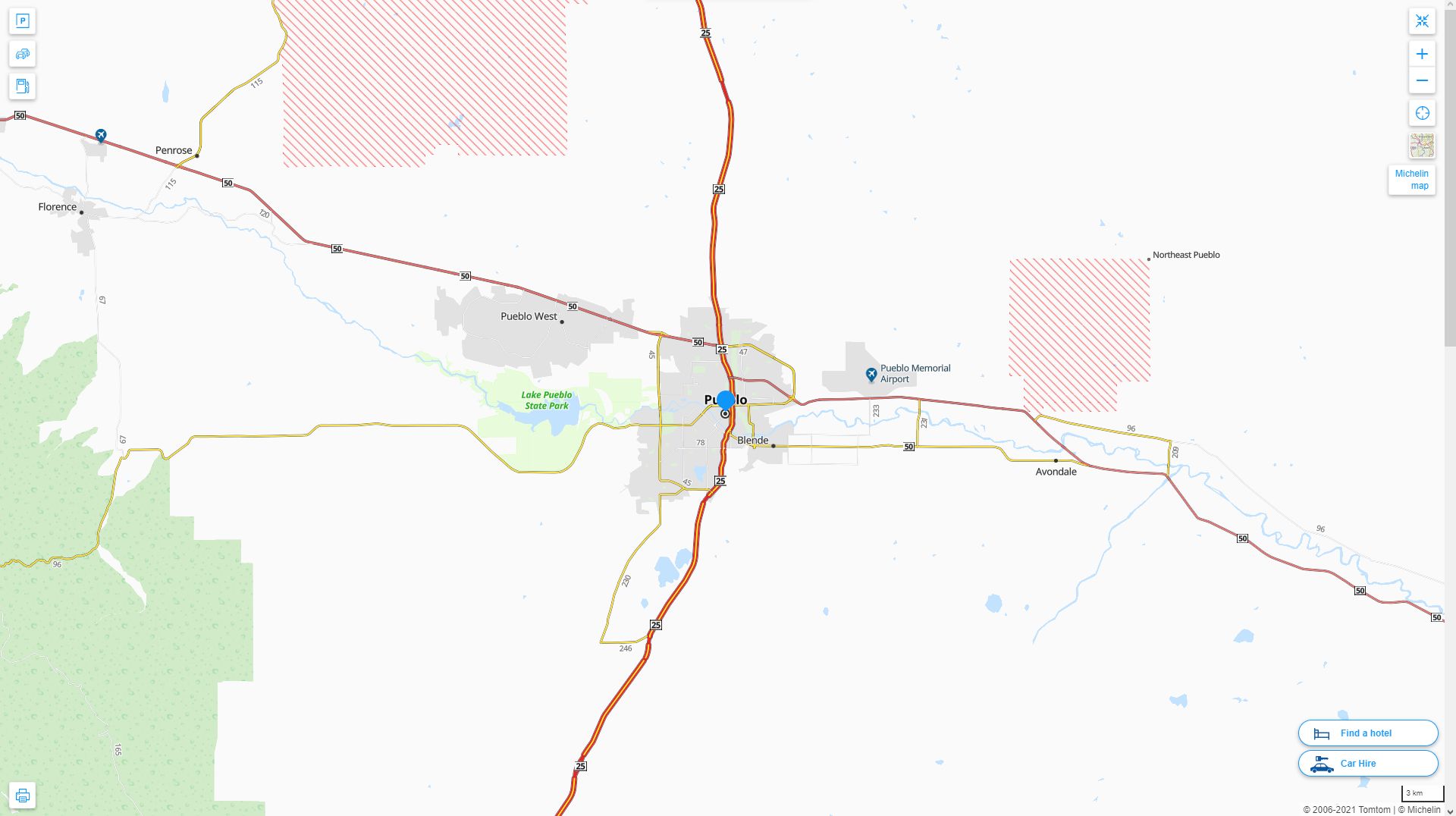 Navigate Pueblo, Colorado Map, map of Pueblo, Pueblo Colorado regions map, Pueblo satellite image, towns map, road map of Pueblo.